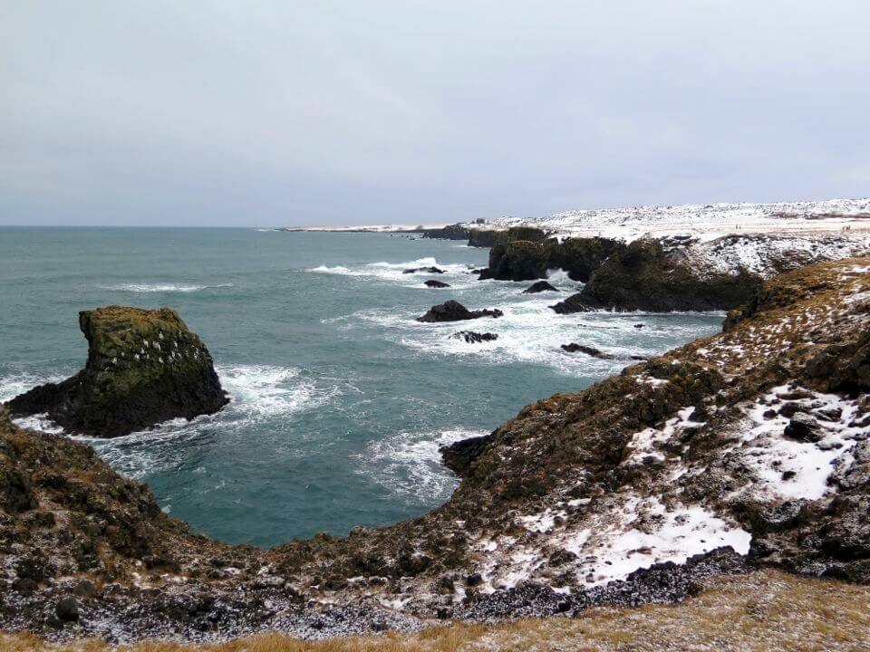 La Péninsule de Snaefellnes offre un condensé des paysages islandais. Ici, la nature paraît encore plus sauvage, plus brute, plus intense. Sur la route, les petits villages de pêcheurs s’enchainent comme celui d’Arnarstapi avec ses jolies petites maisons aux toits rouges et ses falaises qui tombent à pic dans l’océan. Lorsque l’on arrive au célèbre volcan – glacier Snæfellsjökull, on comprend que Jules Verne s’en soit inspiré pour son célèbre roman « voyage au centre de la terre » ! Cette journée est mon plus gros coup de coeur en Islande !
