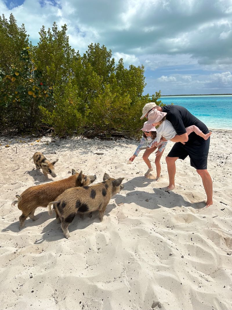 - Excursions : Exuma Cays 350€ pp (285€ pour les enfants à partir de 5 ans), 7 beaches 150€ pp (75€ pour les enfants, gratuit en dessous de 3 ans), location kayak Exuma 65€ 1 adulte + 1 enfant, taxi boat shocking Island 20pp (gratuit bébé), excursion mangrove Long Island 330€ 4p. Si vous avez un budget serré, vous pouvez faire l’impasse sur l’excursion Exuma Cays qui est la plus chère et la plus « surcôtée », les paysages que l’on voit dans l’excursion 7 beaches sont tout aussi beaux selon moi. Vous pourrez aussi voir les cochons nageurs à Long Island notamment.