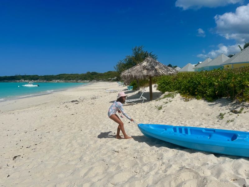 C’est aussi un excellent spot pour mettre à l’eau kayak ou paddle et explorer un peu les environs de Man-O-War Cay. On avait loué un kayak à la demi-journée avec Out Island Explorers qui a été déposé ici directement, c’était MAGIQUE !