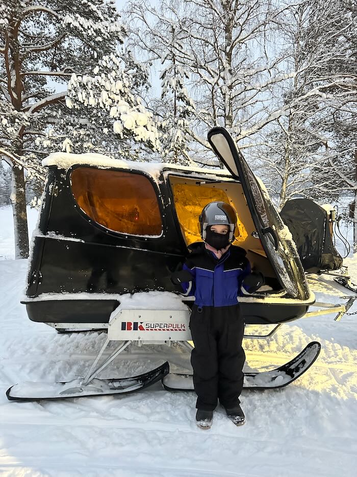 Nous avons vraiment adoré cette activité ! C’est certainement celle que nous avons, tous les 3, préférée faire en Laponie ! Les sensations sont géniales (sans être trop intenses), on a le temps de profiter des paysages magnifiques, et la rencontre avec les chiens est un moment privilégié. La conduite du traineau est vraiment facile, on peut changer de conducteur quand on le souhaite. Si vous ne devez faire qu’une activité en Laponie en famille, je vous conseillerais celle-ci !