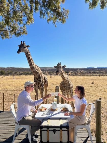 Enfin, certains lodges de luxe sont des destinations à part entière ! Il y a des hôtels vraiment incroyables en Namibie et cela participe aussi à la magie du voyage ! De mon côté, je retiens le Voigtland où l’on peut vivre un moment inoubliable avec les girafes, l’Okonjima Plains Camp pour une expérience luxueuse au coeur de la réserve privée ou encore le Spitzkoppen lodge et sa vue incroyable sur les formations rocheuses… Mais, il y en aurait eu tant d’autres que nous aurions aimé tester !