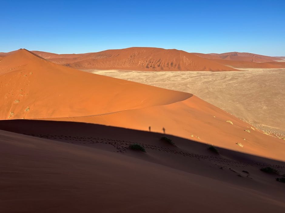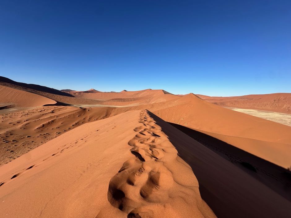 C’est la dune la plus haute du secteur de Sossusvlei. Elle culmine à environ 325 mètres ! Pour y accéder, vous devrez soit prendre la navette, soit conduire 5km sur le sable (4×4 obligatoire). Monter Big Daddy est un petit défi physique : l’ascension peut être éprouvante (comptez au moins 1h de montée dans le sable), mais la récompense est immense. Du sommet, on surplombe tout le désert environnant et, juste en contrebas, la cuvette blanche de Deadvlei. La descente est beaucoup plus rapide puisqu’on peut tout simplement dévaler la pente jusqu’à Deadvlei, c’est assez fun !