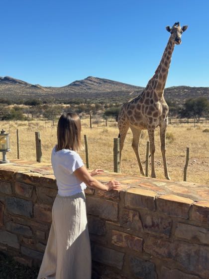 Nous avons fait le choix de rester à Windhoek pour cette première journée, car j’avais repéré un hotel qui propose une expérience unique autour des girafes : le voigtland guesthouse.