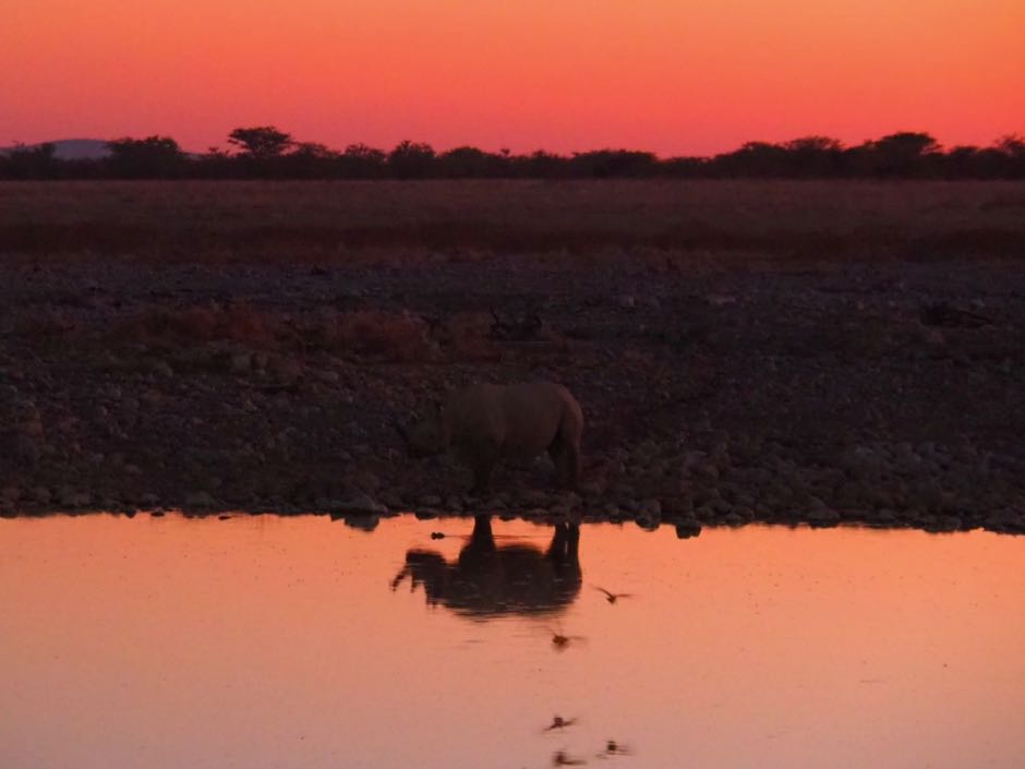 • Okaukuejo : rhinocéros noirs la nuit tombée soir