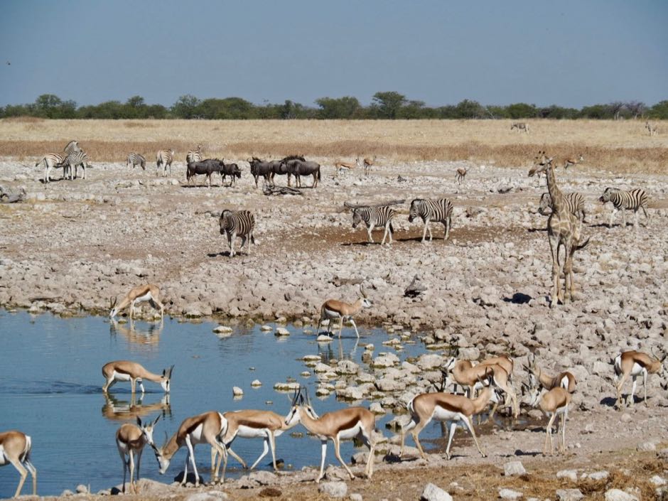 Ce qui rend Etosha si spécial, ce sont ses nombreux points d’eau naturels et artificiels, où les animaux viennent s’abreuver surtout en saison sèche (de mai à septembre). C’est donc assez facile de voir des animaux ici pendant cette période.