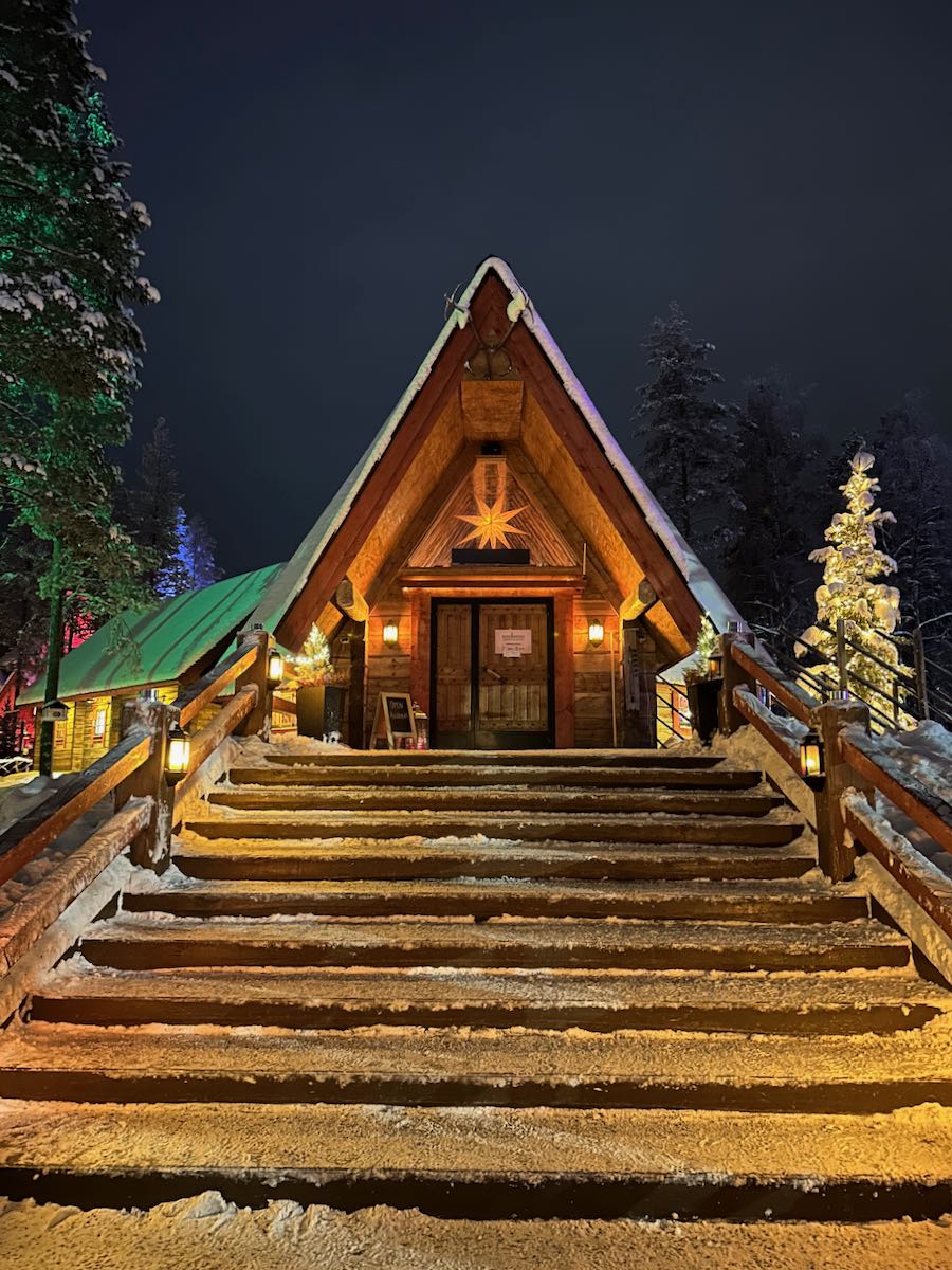 Le Bureau du Père Noël est situé juste au niveau du cercle polaire arctique, à côté de la place principale du village du Père Noël (c’est le bâtiment avec un père Noël sur le toit). En entrant, les lutins vous accueillent pour entrer dans le parcours qui mène au Père Noël. La file d’attente peut-être longue parfois, mais le parcours est sympa et vous fera patienter agréablement. C’est super bien décoré, un peu à la Disney. Vous pourrez y voir des grottes, des ateliers, des lutins au travail… Ici, on plonge à 100% dans la féérie de Noël ! On a adoré !