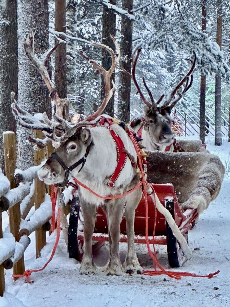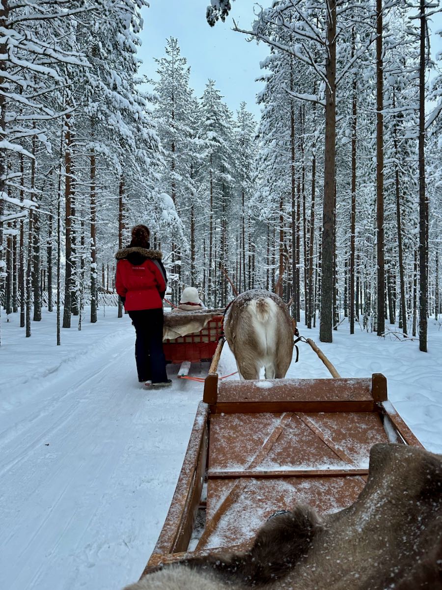Voilà une autre activité très populaire à faire au village du Père Noël : une balade en traineau tiré par les rennes du Père Noël ! Il est possible de faire cette balade directement derrière le Bureau du Père Noël en hiver (Santa Claus Reindeer). Effectivement, je comprends aisément pourquoi l’activité est populaire auprès des familles. Faire une balade en traineau à rennes dans le village du Père Noël, ça a ce petit quelque chose de magique, surtout pour les enfants. Néanmoins, c’est plutôt cher, d’autant plus que les prix sont majorés sur le mois de décembre (no comment). Il y a 3 promenades de différentes durées :